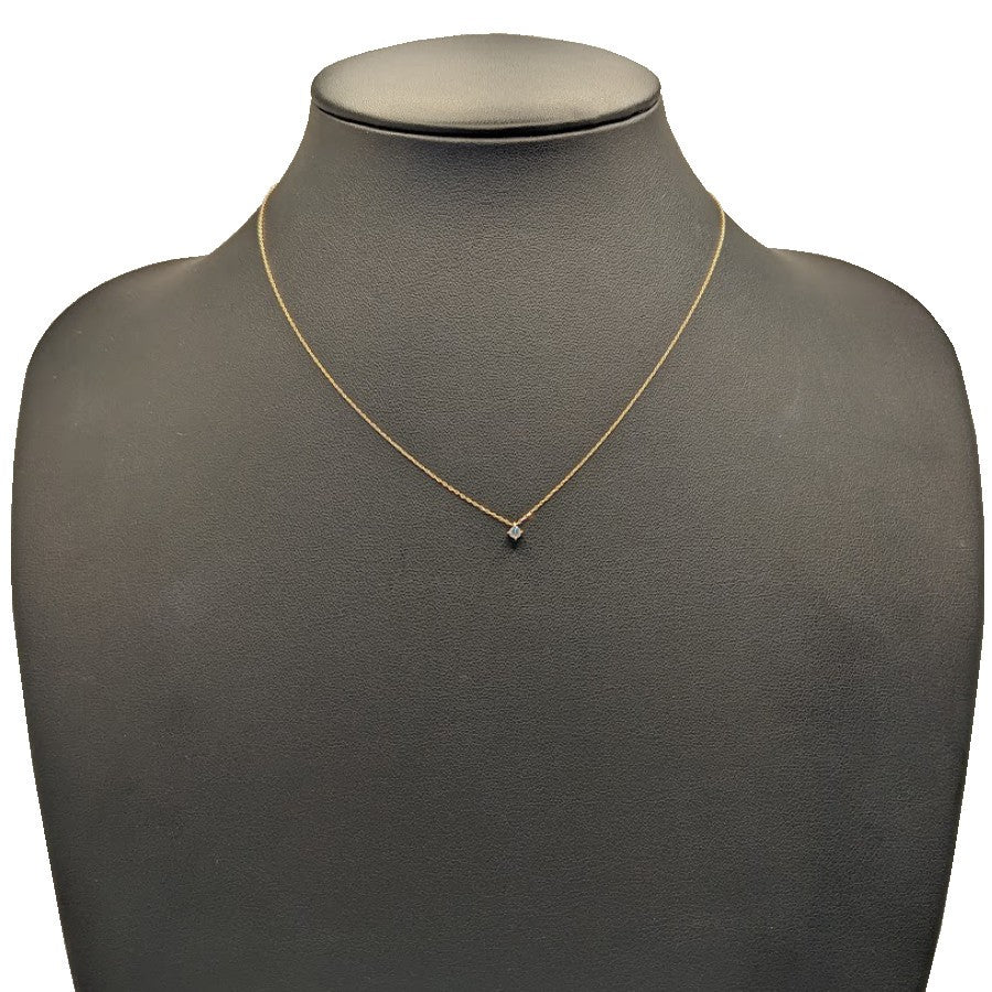 K18素材に、ダイヤモンドをあしらったネックレスです。シンプルながらも存在感のあるデザインで、胸元に上品なきらめきを添えてくれます。日常使いから特別なシーンまで幅広く活躍し、永く愛用できるタイムレスなジュエリーです。 |