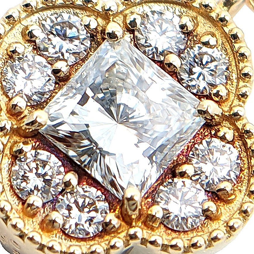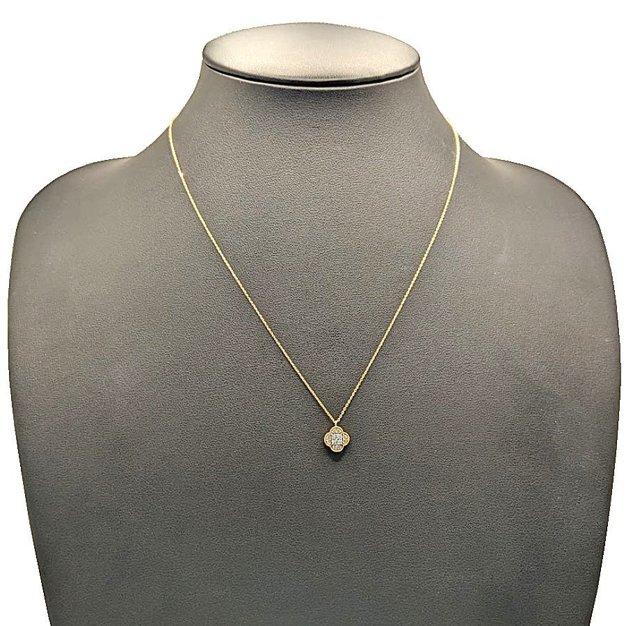 K18<br />ダイヤモンド×オニキス クローバーモチーフネックレス