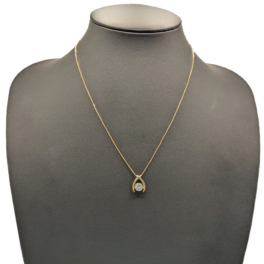 K18素材に、ダイヤモンドをあしらったネックレスです。ダイヤモンドが中央でゆらめくように揺れ、存在感あふれるデザインで、光を受けるたびにダイヤモンドが繊細に煌めき、胸元に上品で華やかな印象を与えてくれます。 |