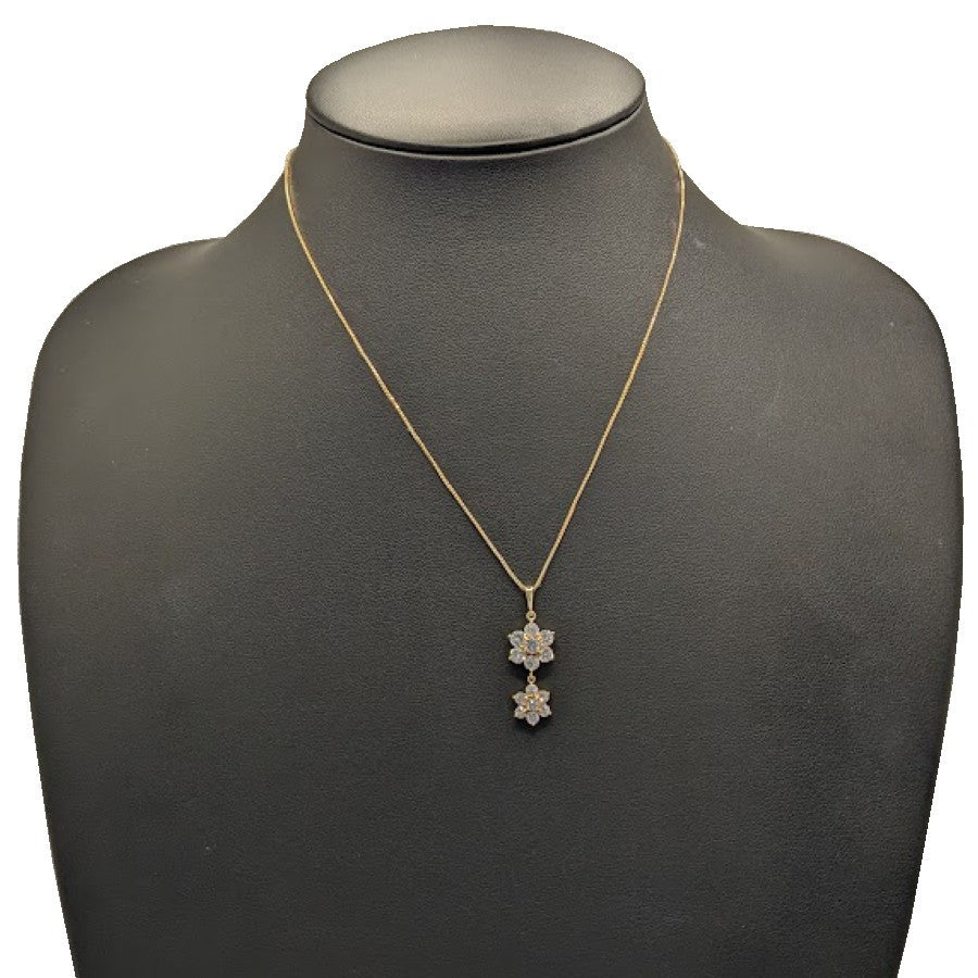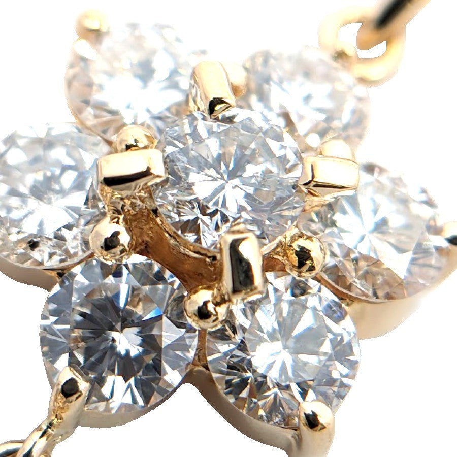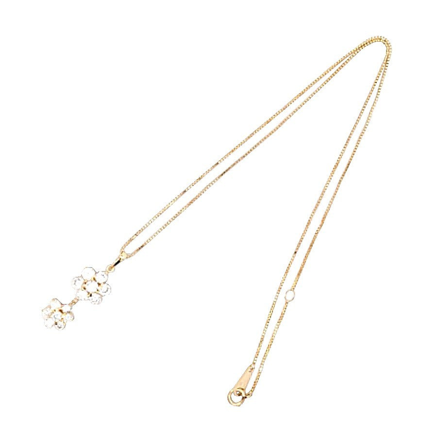 K18素材に、ダイヤモンドをあしらったネックレスです。フラワーモチーフはそれぞれダイヤモンドを繊細にセッティングしており、光を受けるたびに瑞々しく輝きます。縦のラインを強調する2連のデザインは、首元をすっきりと長く見せ、エレガントで女性らしい印象を演出します。 |