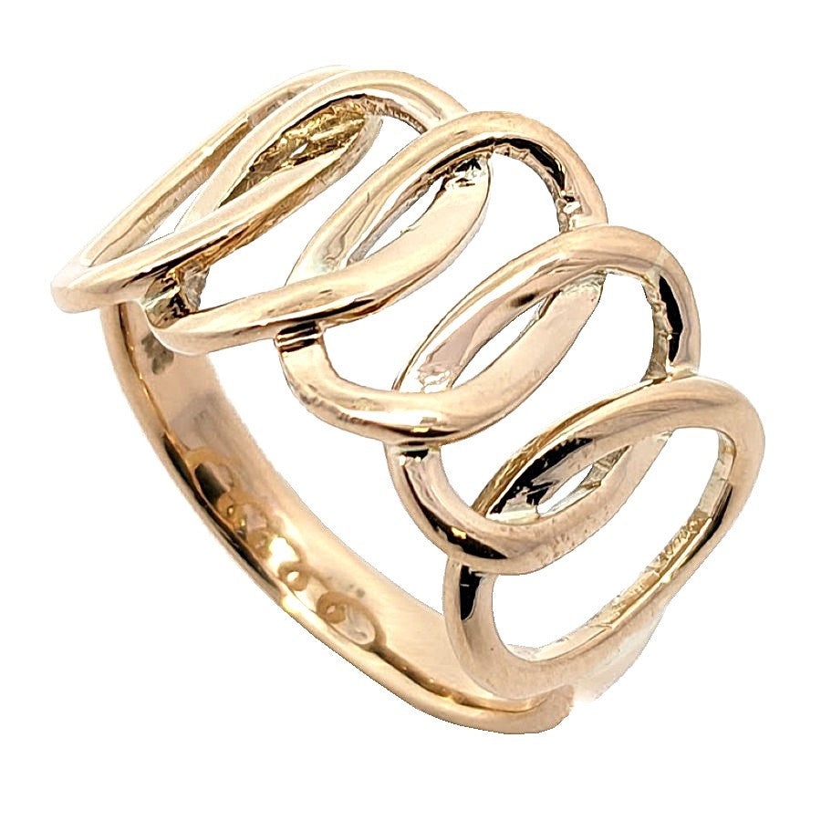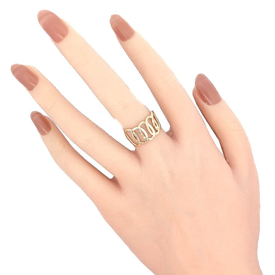 K18素材のリングです。滑らかに連なる立体的なフォルムが、指先に軽やかな華やぎを添えます。シンプルながらも個性を引き立てるデザインで、指元を優雅に彩ります。