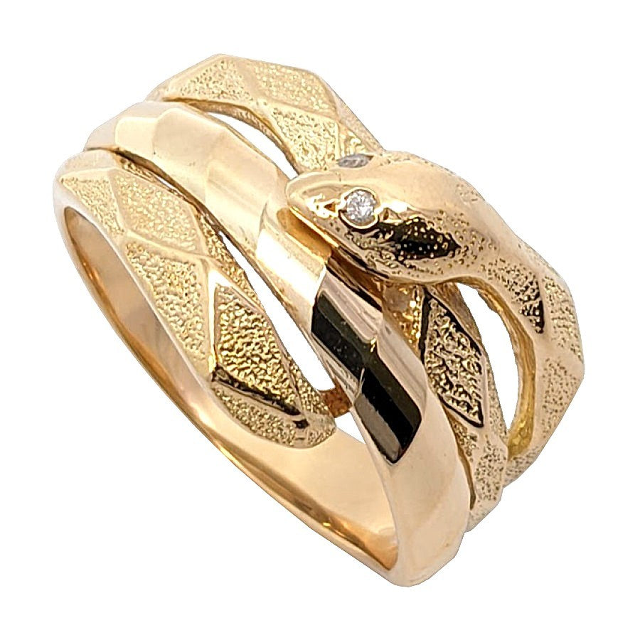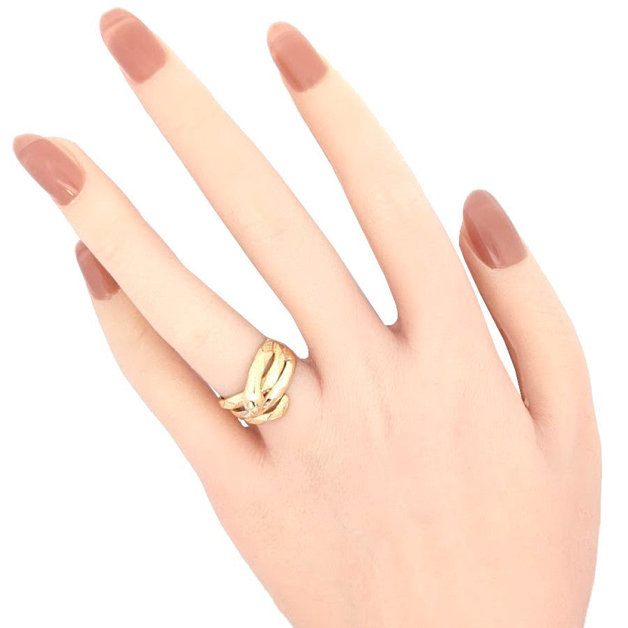 K18素材に、ダイヤモンドをあしらったリングです。しなやかな曲線で表現されたヘビのフォルムは、力強さと優雅さを併せ持ち、指元に存在感を与えます。瞳の部分にはダイヤモンドをセッティングし、見る角度によって鋭くも繊細に輝きを放ちます。古来より「再生」や「繁栄」の象徴とされるヘビを身に着けることで、お守りのように日常を支えてくれる一本です。 |