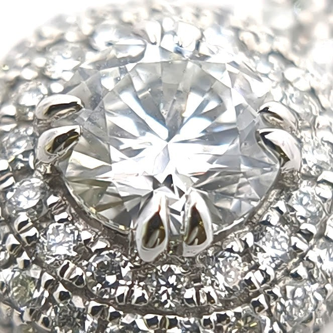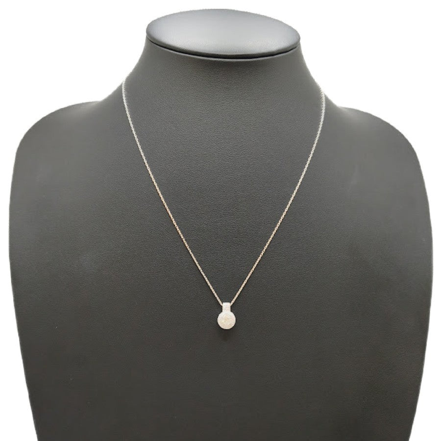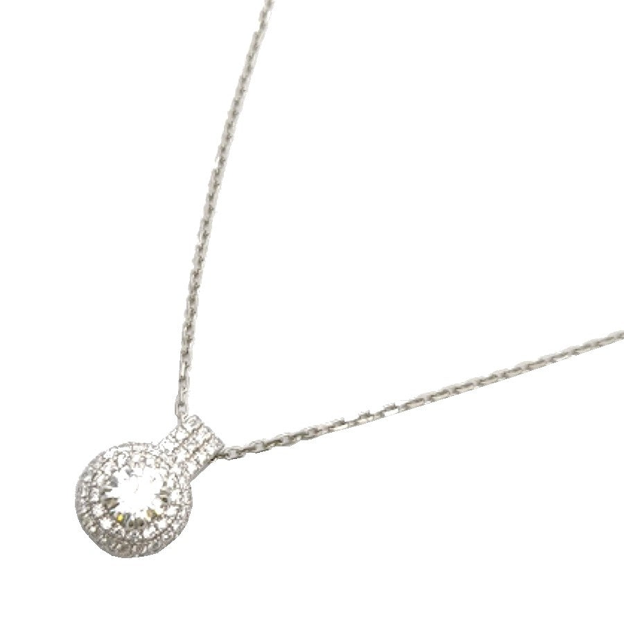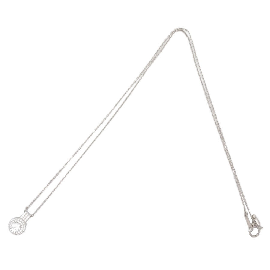 プラチナ素材に、ダイヤモンドをあしらったネックレスです。センターに煌めくラウンドブリリアントダイヤモンドを、メレダイヤが繊細に取り囲むデザイン。プラチナの上質な輝きが、ダイヤモンドの透明感を一層引き立てます。見る角度によって光が幾重にも反射し、胸元に眩いオーラを添える逸品。フォーマルにもデイリーにも寄り添う、永遠の定番ジュエリーです。 |