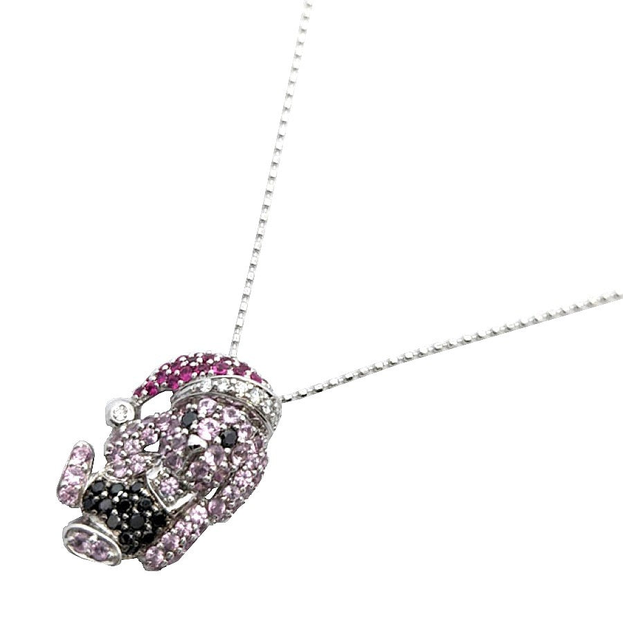 コメント K18ホワイトゴールド素材に、ピンクサファイア・ルビー・ダイヤモンドをあしらったネックレスです。愛らしい犬モチーフで、ピンクサファイアで優しい色味の毛並みを表現し、ルビーでサンタ帽の鮮やかな赤を、ダイヤモンドで輝きをプラス。細部までこだわった立体感ときらめきが魅力の一点です。