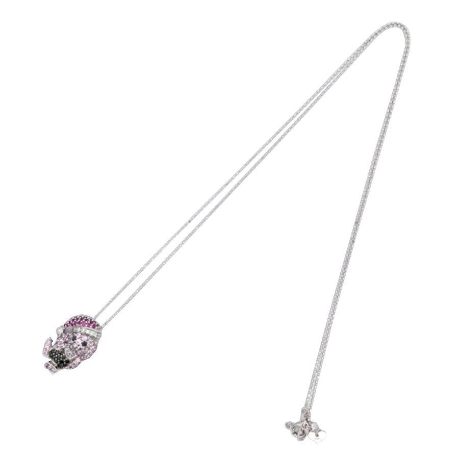 K18WG<br />ピンクサファイア×ルビー×ダイヤモンド ドッグネックレス