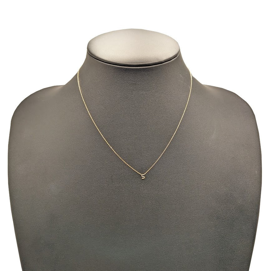 K18素材のネックレスです。エレガントで洗練された「S」のイニシャルをあしらったネックレスで、上品なゴールドの輝きが肌になじみ、デイリーから特別な日まで幅広く活躍します。 |
