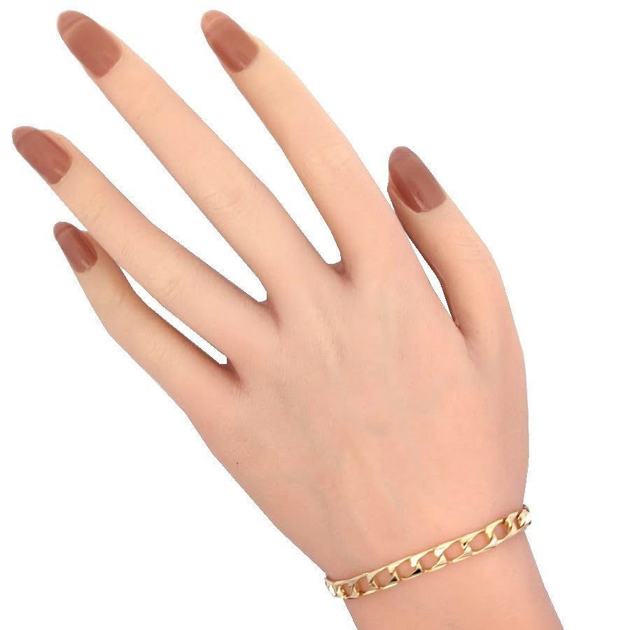 K18素材のブレスレットです。ひとつひとつのチェーンに程よい抜け感があり、ゴールドの輝きを引き立てながらも軽やかな印象に仕上げています。存在感がありながら上品で、幅広いスタイルに映える万能アイテムです。 |