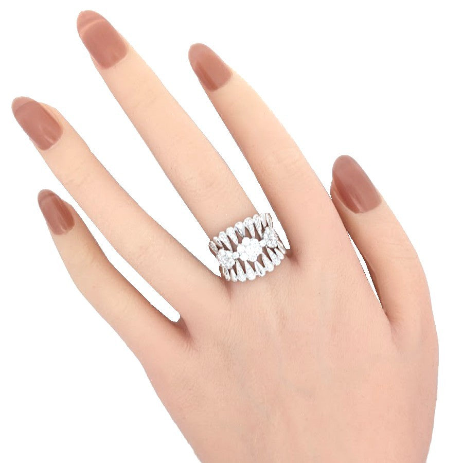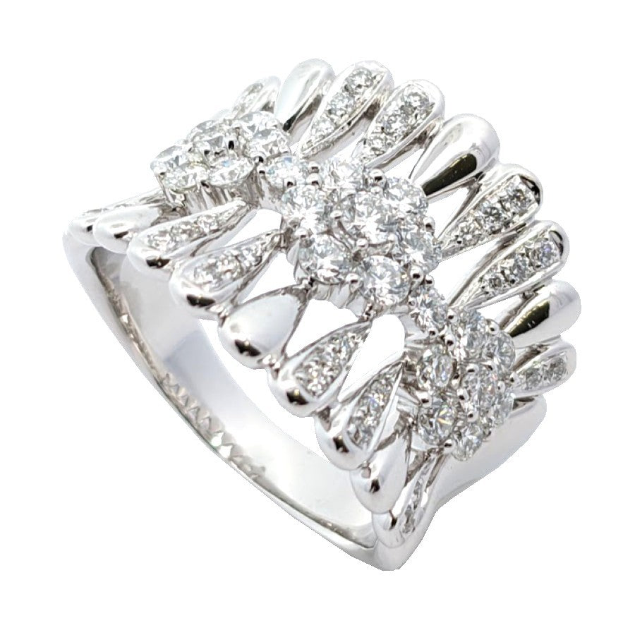 K18ホワイトゴールド素材に、ダイヤモンドをあしらったリングです。優美な曲線と繊細な煌めきが織りなすリングで、どこから見ても美しいシルエットが、手元に上品な華やかさを添えます。ホワイトゴールドの清楚な輝きと、ダイヤモンドの煌めきが相まって、シンプルながらも存在感のあるデザインに仕上がっています。 |