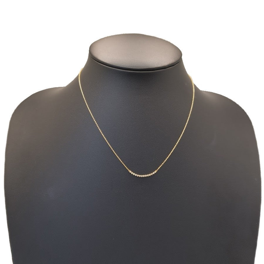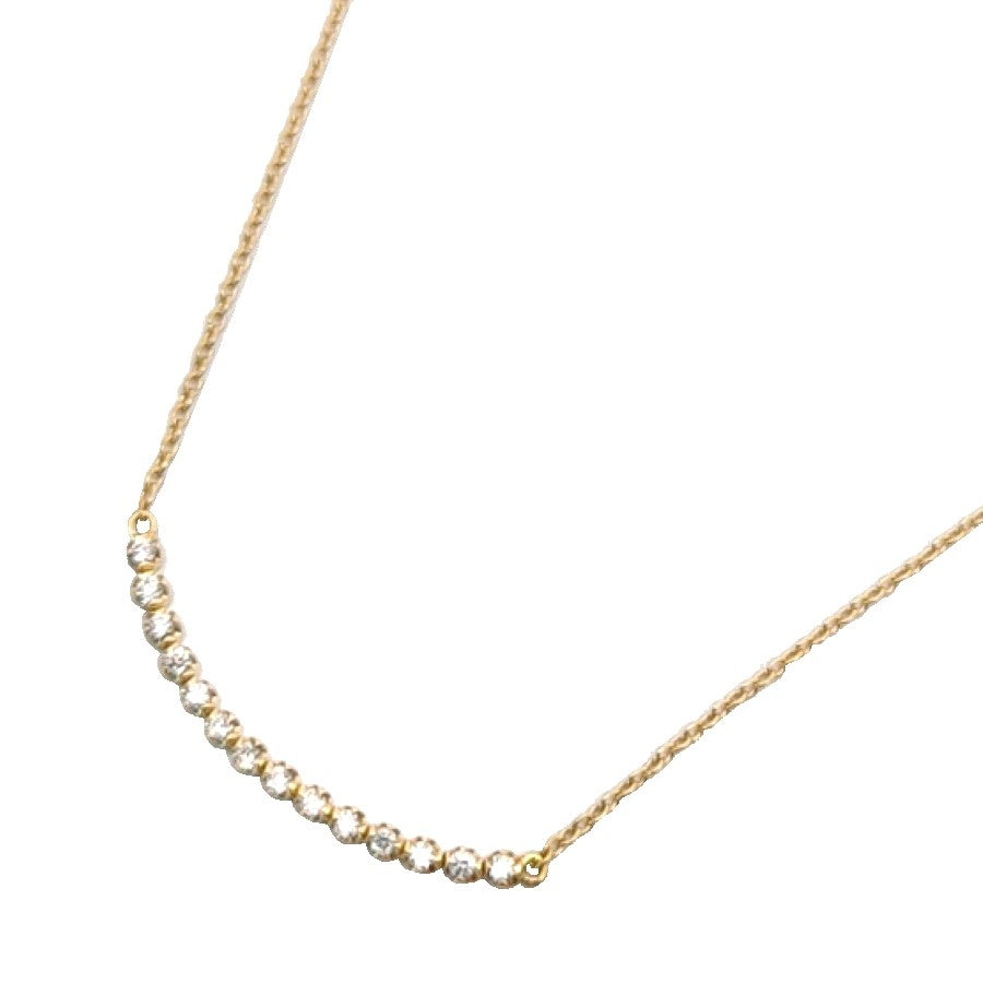 K18イエローゴールド素材に、ダイヤモンドをあしらったネックレスです。ダイヤモンドを曲線上にあしらったネックレス。シーンや年代を問わず永く愛用できるアイテムとして、歴代のAHKAHジュエリーの中でも非常に人気の高いデザインです。長さはショート/ロングの2種類があり、一粒ダイヤやパヴェシリーズといったAHKAHならではの繊細なモチーフと合わせて、多様なレイヤードスタイルが楽しめます。 ※参考定価118,800円 |