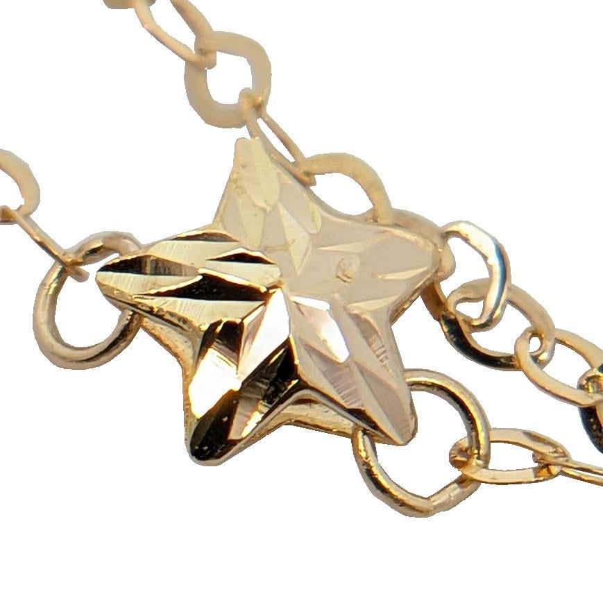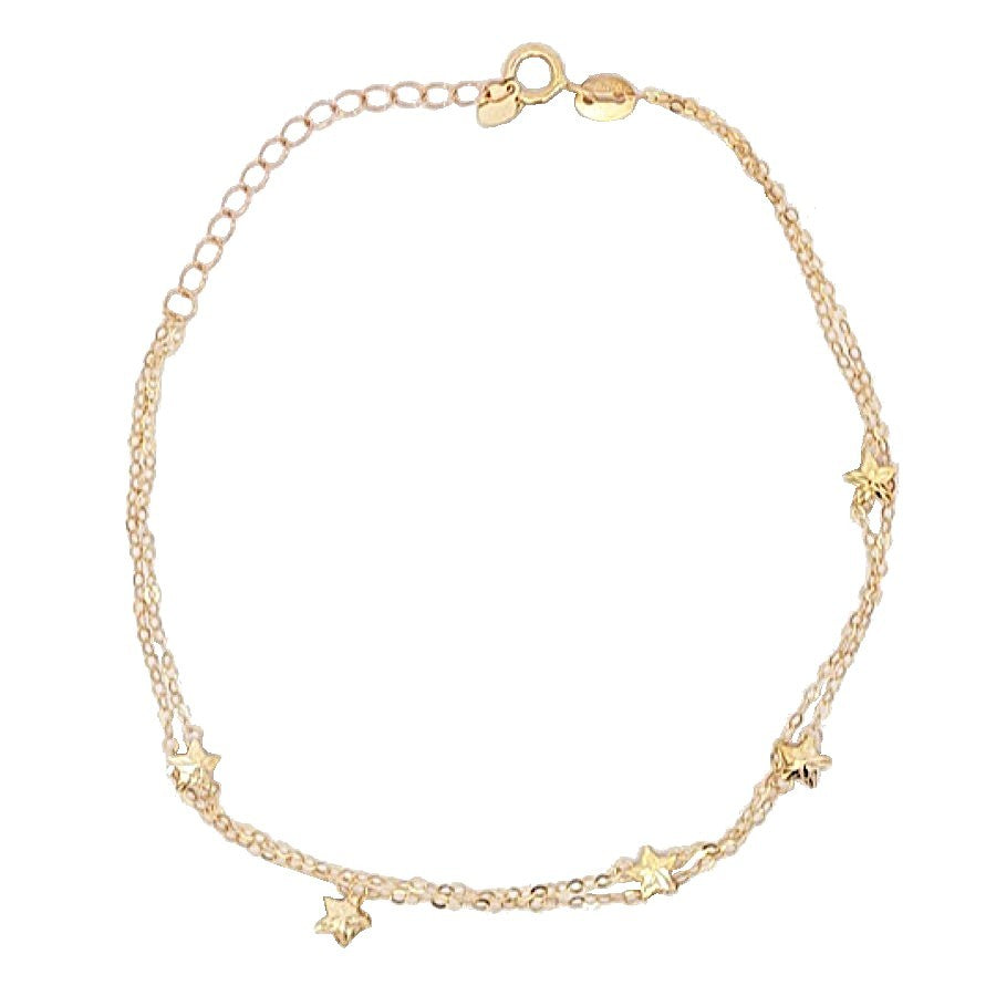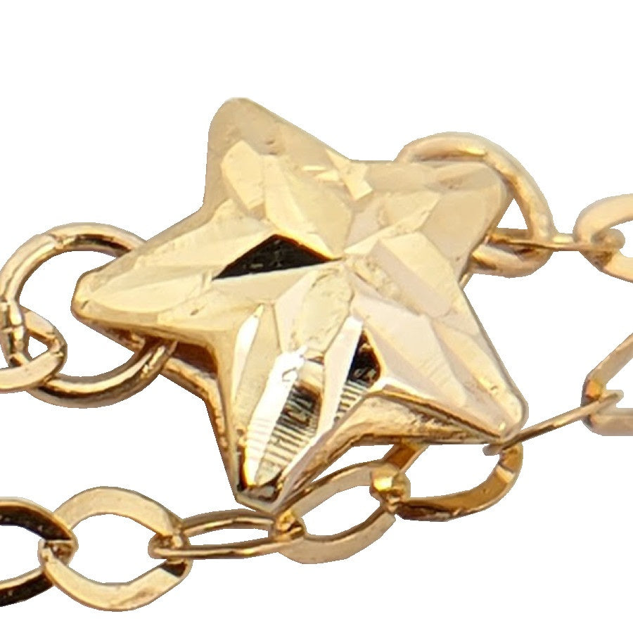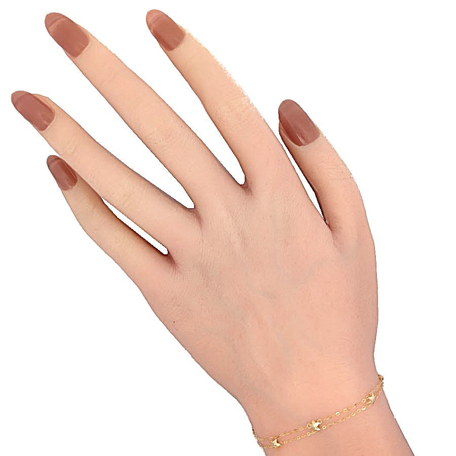 K18素材のブレスレットです。煌めく小さな星々をあしらったブレスレットで、手首の動きに合わせてさりげなく輝き、夜空に瞬く星を思わせます。上品なゴールドの艶と可憐なモチーフが、シンプルながらも洗練された存在感を演出。コーディネートに遊び心と華やかさを添えてくれます。 |