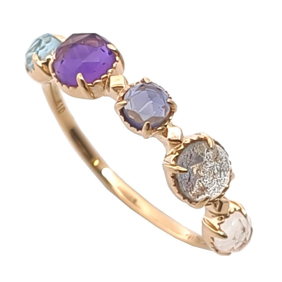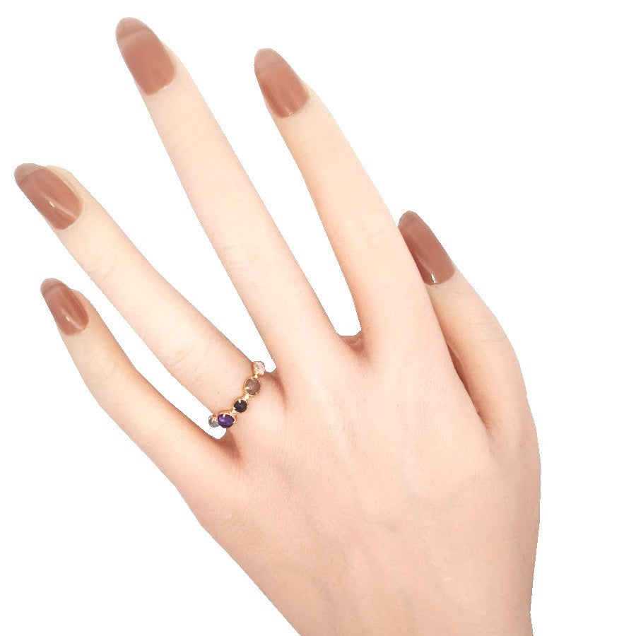K10素材に、ラブラドライト・アイオライト・アメシスト・トパーズをあしらったリングです。