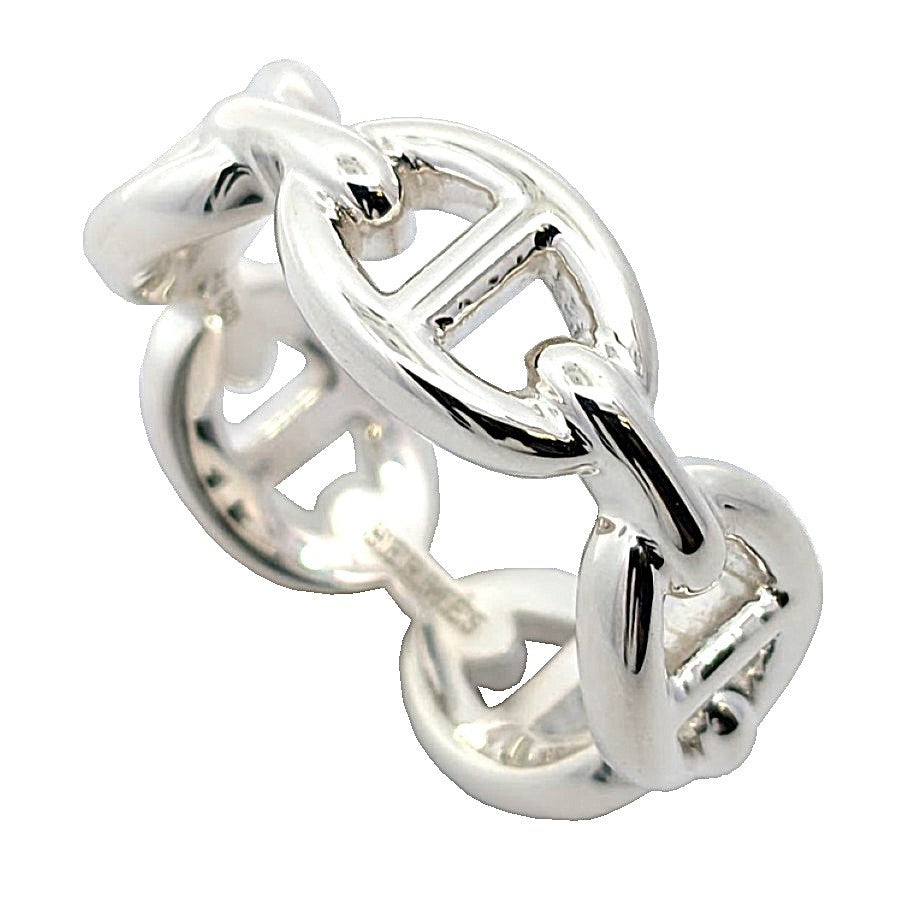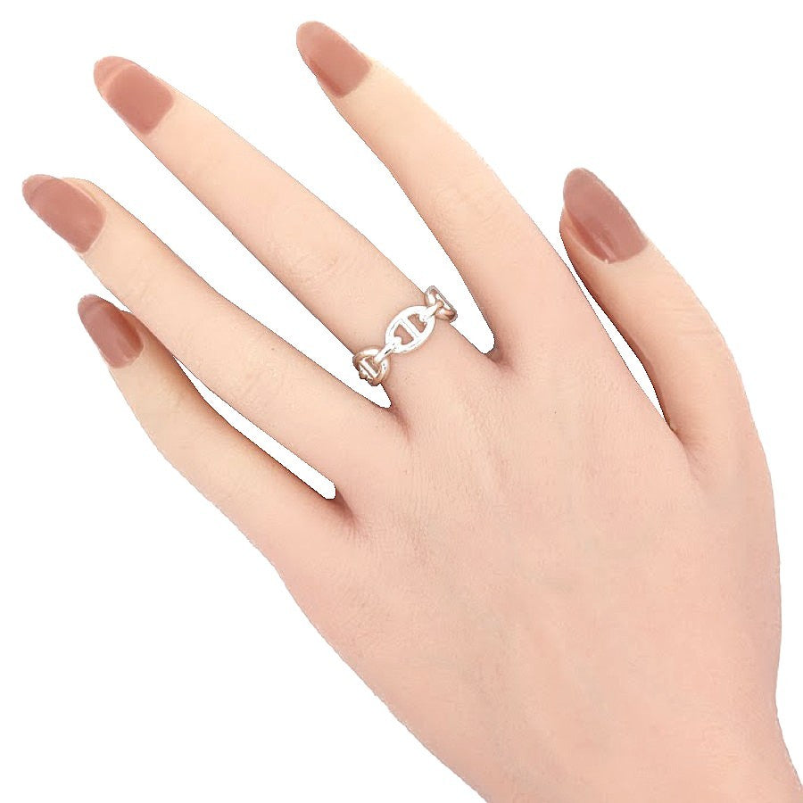 925素材のリングです。アイコニックなチェーンモチーフを力強くかつ洗練されたラインで表現し、シルバーならではの上品な輝きが指元を引き立てます。ユニセックスでお使いいただけるデザインは、日常のスタイルにモダンなアクセントを添える一本です。 |