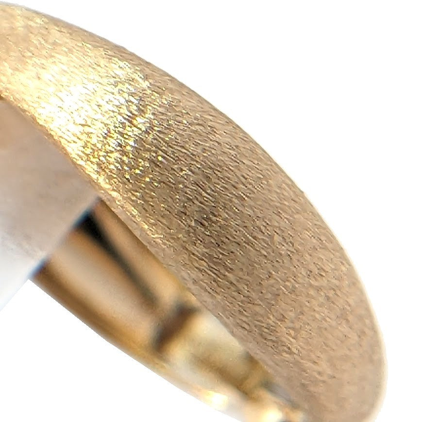 K18素材のイヤリングです。柔らかな楕円形のフォルムが耳元に優しく馴染みつつ、きらりと控えめに輝く質感が洗練された印象を添えます。派手過ぎず上品な存在感があります。 |