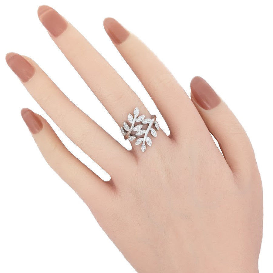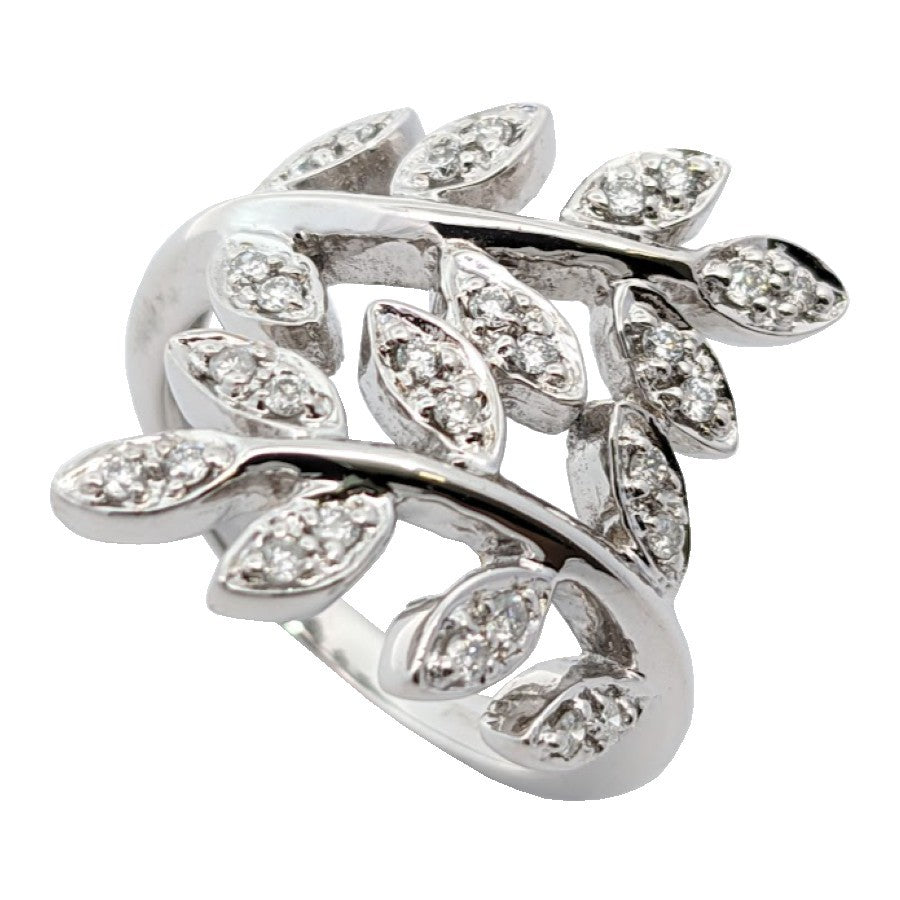 K18素材に、ダイヤモンドをあしらったリングです。繊細にかたどられたリーフモチーフが指先を包み込む、優美なデザインです。葉脈を思わせるラインに細やかなダイヤモンドをあしらい、自然の持つしなやかな美しさと輝きを表現。動くたびに光を受けてきらめくダイヤモンドが、指先に上品な存在感を与えます。 |