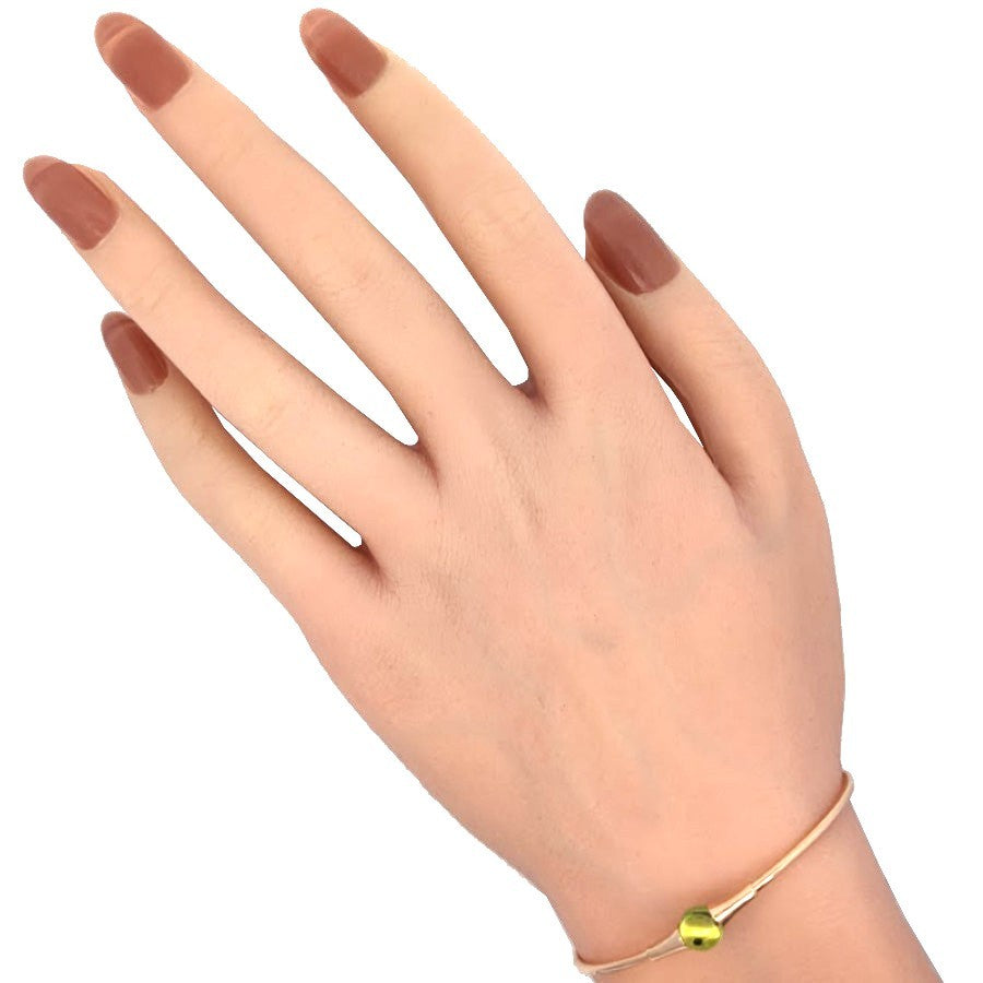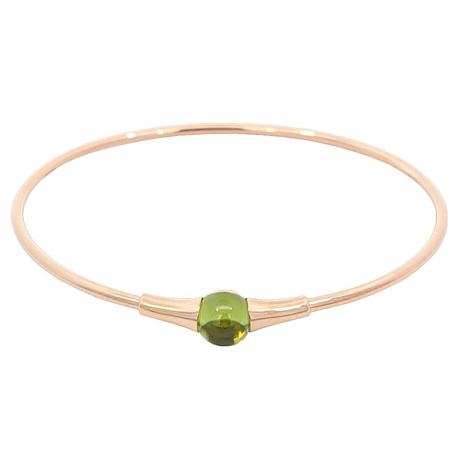コメント K18ピンクゴールド素材に、ペリドットをあしらったブレスレットです。中央には鮮やかなグリーンが魅力のペリドットをあしらい、柔らかなピンクゴールドとのコントラストが手元を明るく彩ります。シンプルでありながら印象的なデザイン。イタリアンジュエリーらしい遊び心とエレガンスを感じさせる逸品です。