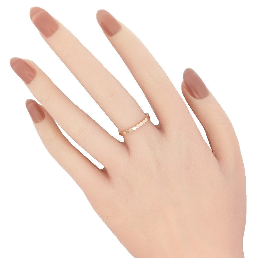 コメント K18ピンクゴールド素材のリングです。鮮やかで活気に満ちた自然。再解釈されたミツバチのモチーフ。惹きつけるような輝き。Bee de Chaumet 「ビー ドゥ ショーメ」コレクションは、これらの要素を融合させた唯一無二のコレクション。ミツバチの巣のように、連なるハニカムモチーフが無限に続く、グラフィックでモダンなクリエイション。光を取り込み、身につける人と共に輝きます。