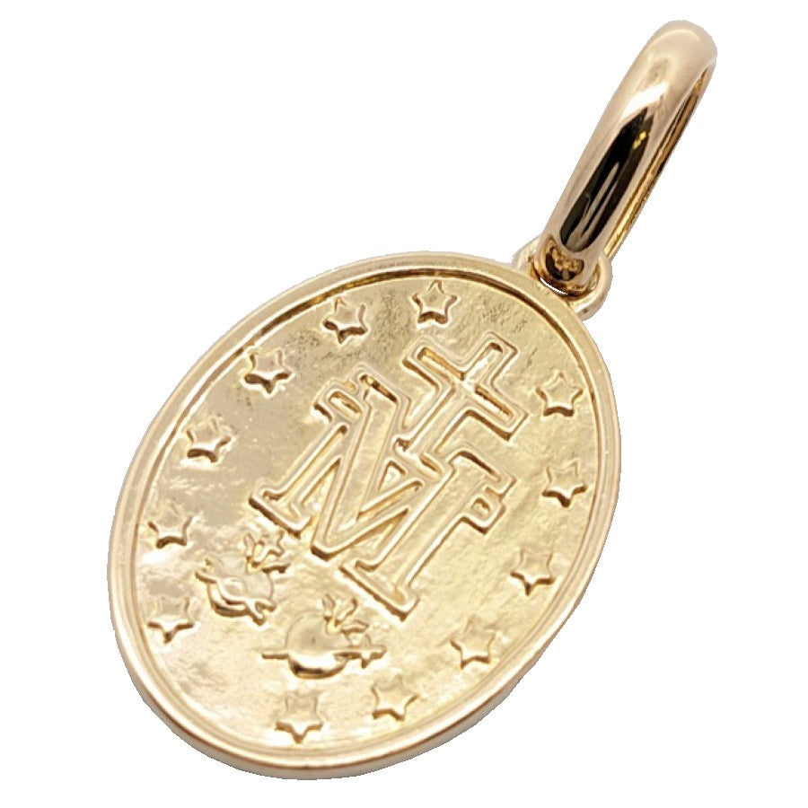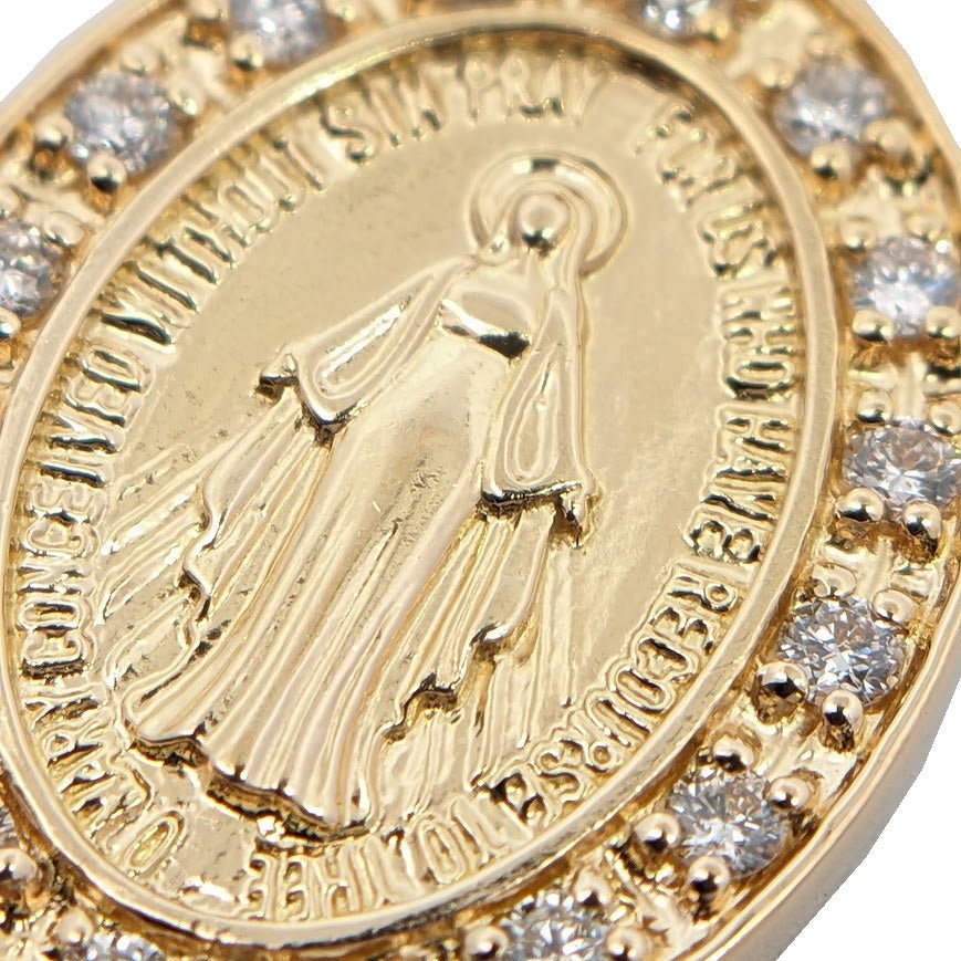 コメント K18素材に、ダイヤモンドをあしらったペンダントです。表面には優美な聖母マリアの姿が浮かび上がり、裏面には十字架とMモチーフが丁寧に刻まれています。周囲を取り巻くきらめくストーンが、神秘的な存在感を一層引き立てます。